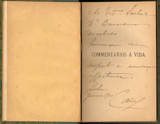 Acabei de adquirir o livro da Alice Pestana - "Comentários á Vida", com dedicatória a Bernardino Machado