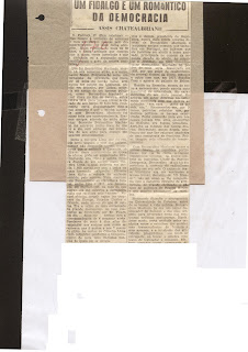 Recorte de "O Jornal", do Rio de Janeiro, do dia 18 de Junho de 1944, com um artigo de Assis Chateaubriand sobre Bernardino Machado.