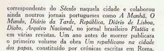 - clicar aqui - a reprodução da capa do livro de Emygdio Garcia - "Um Republicano na Cidade dos Papas". Lembrei-me que tinha um exemplar numa das minhas estantes. O livro fora oferecido pelo autor à redação do jornal "O Diabo", e posteriormente adquirido pelo Luis Pacheco, que o teria dado a outro leitor. As voltas que um livro dá!...